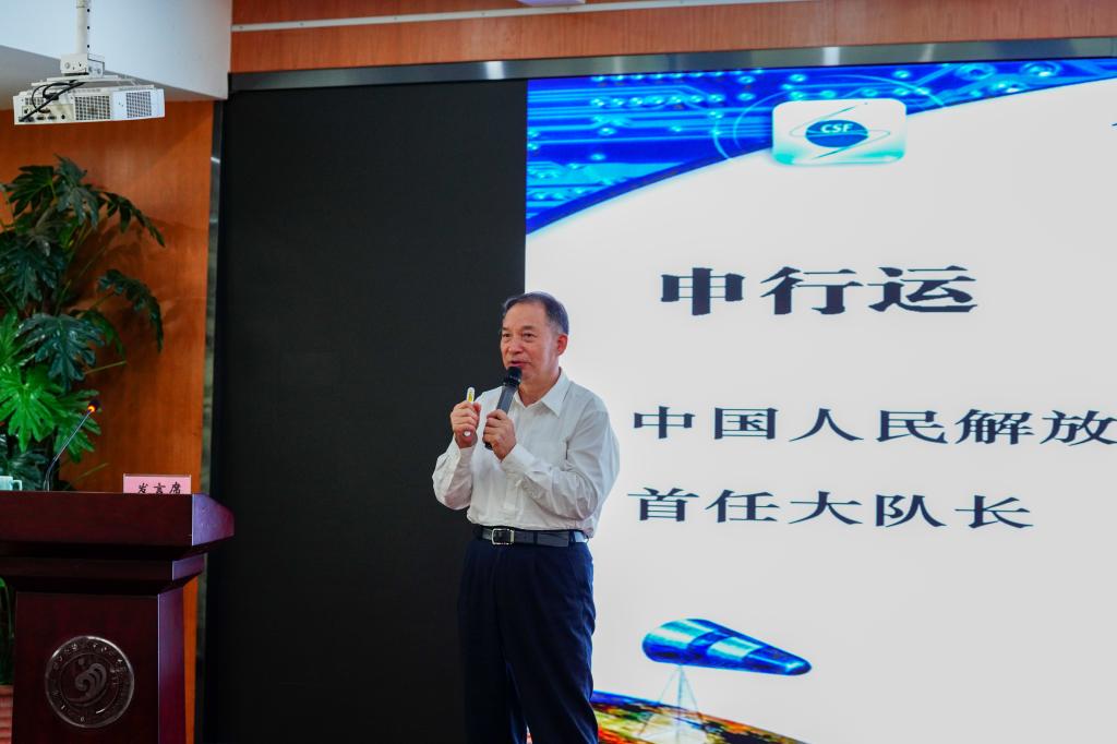 现场,特邀嘉宾申行运为全体作《辉煌的中国航天》主题报告。申行运大队长作为中国人民解放军航天员大队首任大队长,曾负责我国首批航天员的选拔以及航天员大队的筹备组建,3次带领载人航天飞行乘组赴酒泉卫星发射基地,圆满完成神舟五号、神舟六号、神舟七号飞行任务。报告中,他从我国载人航天工程、北斗导航工程、嫦娥探月工程和中国空间站等重大成就导入,就中国航天取得的成功及背后的原因进行分享。讲座内容丰富、语言鲜活,“特别能吃苦,特别能战斗,特别能攻关,特别能奉献”的载人航天精神深深感染在场师生。