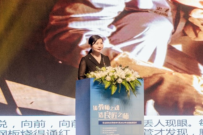教育部教师工作司司长任友群强调,要顺应新时代高质量发展的需要,顺应职业教育教师队伍类型化发展的需要,进一步强化职业教育教师队伍的关键基础作用。乘风破浪、改革创新、不断突破,深化推进产教融合、科教融汇、普职融通,为加快构建现代职业教育体系、建设教育强国,培养更多高素质技术技能人才,提供坚强师资保障。希望这次职业院校优秀教师代表巡回宣讲活动,能够以点带面、各省推动、校校开花、形成气候,营造全社会关心关注职教教师队伍的良好氛围,在全社会掀起劳动光荣、技能宝贵、创造伟大的时代风尚。