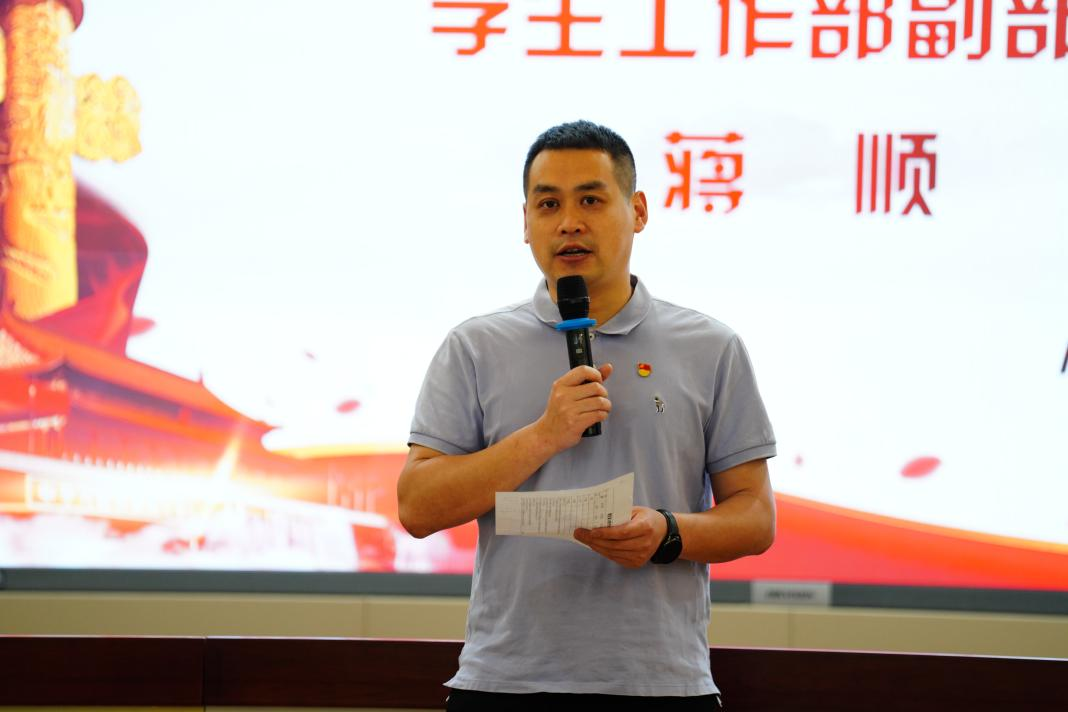 随后,学生工作部副部长蒋顺老师上台点评,他指出:“本次大赛参赛选手们准备充分、紧扣主题,结合自身学科特长和实践经历,创新讲演内容和形式设计,真正做到了“小角度、大主题、好故事”。同时,也提出三点建议:一是要以小见大,不要宏大叙事;二是要虚实结合,不要虚实脱节;三是要深入浅出,不要浅入浅出。最后,蒋顺老师为各位参赛选手的精彩表现点赞,并向在场的工作人员表示感谢。”