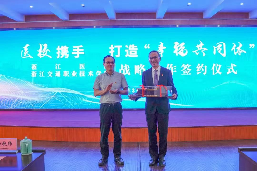 学校党委书记孙校伟与浙江医院党委书记陈军共同为战略合作揭牌,医校双方战略合作由此正式启航。