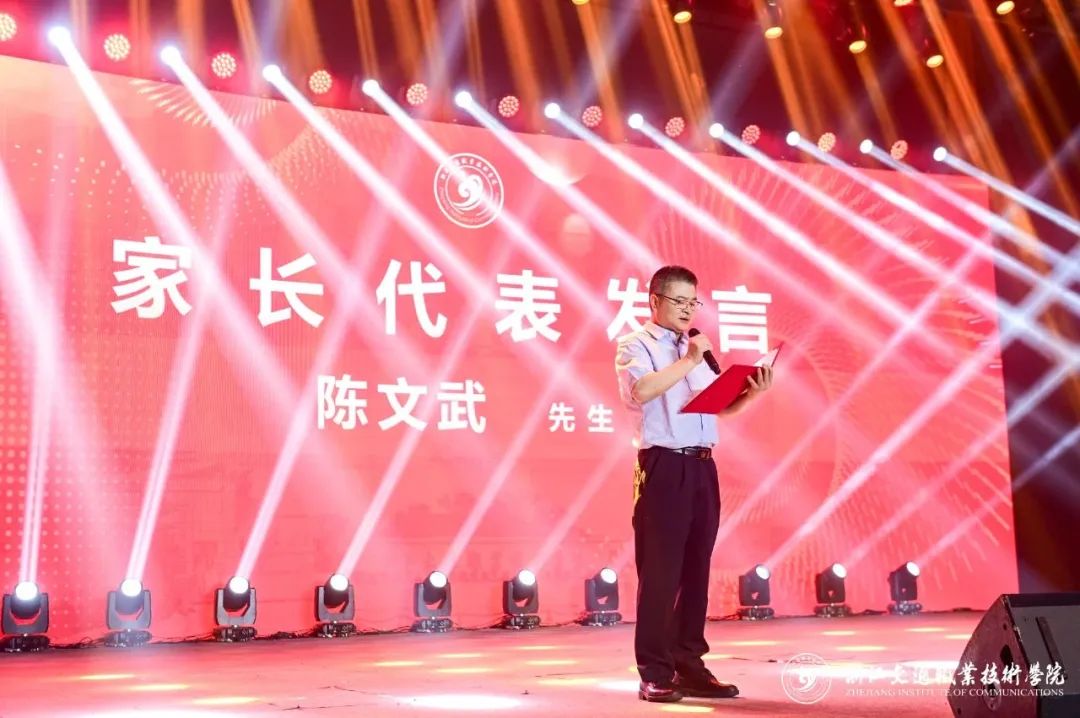 家长代表——路桥学院陈育皓同学的父亲陈文武先生发言