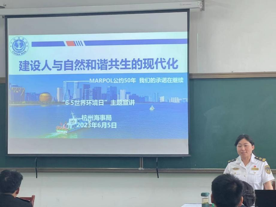 6月5日是世界环境日,今年第52个世界环境日我国的主题为“建设人与自然和谐共生的现代化”。围绕主题,杭州海事局和学校海运学院共同开展“MARPOL公约50年 我们的行动在继续”的航海科普教育主题宣讲活动。活动旨在促进全社会增强生态环境保护意识,投身生态文明建设,共建美丽中国。