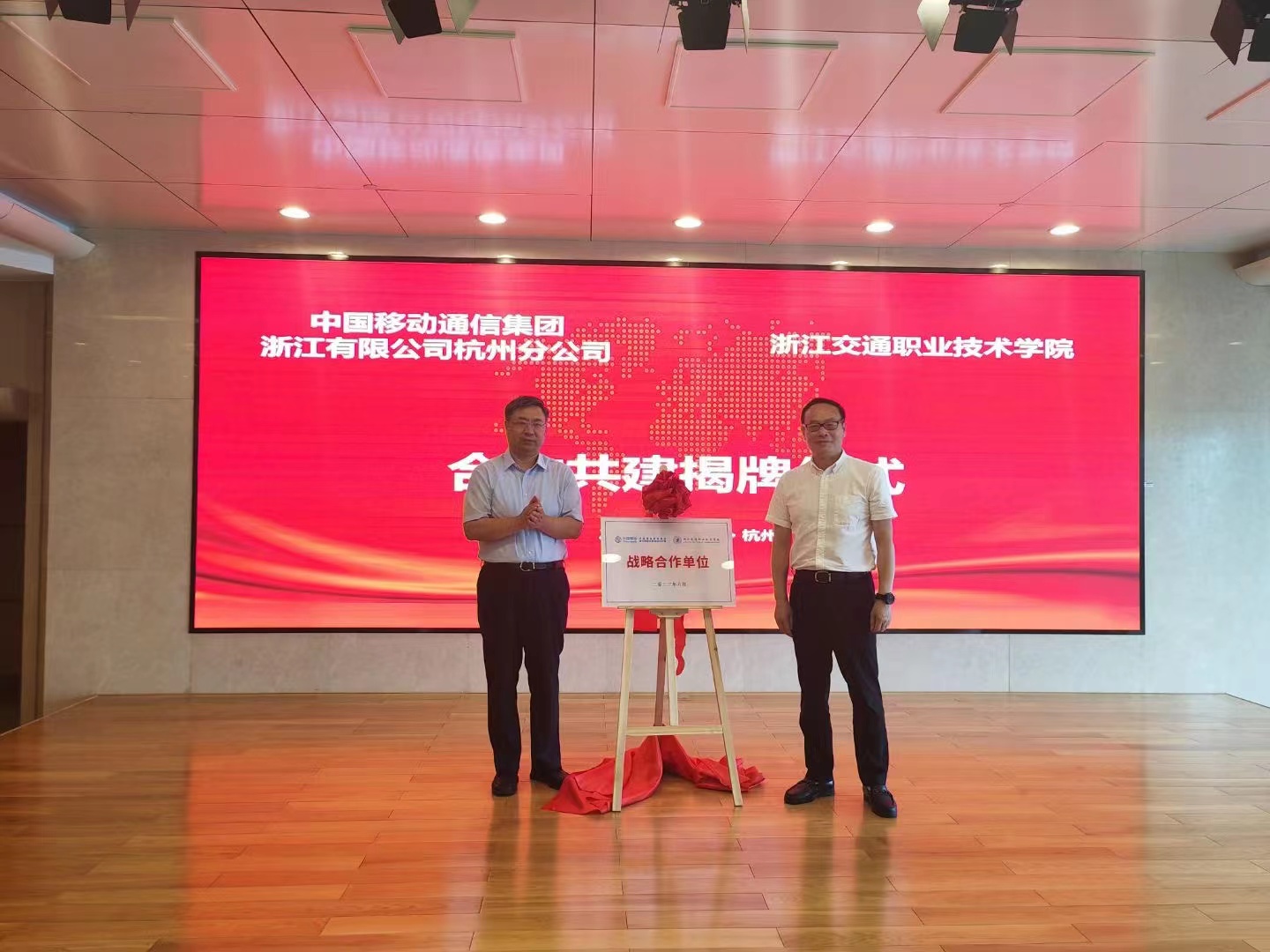 6月6日下午,学校与中国移动杭州分公司签约仪式在杭州移动公司总部举行。校党委书记孙校伟,党委委员、副院长姚钟华,学校相关职能部门负责人,移动杭州分公司党委书记、总经理王文生、党委委员副总经理屠宇飞等出席签约仪式并揭牌。仪式由屠宇飞副总经理主持。