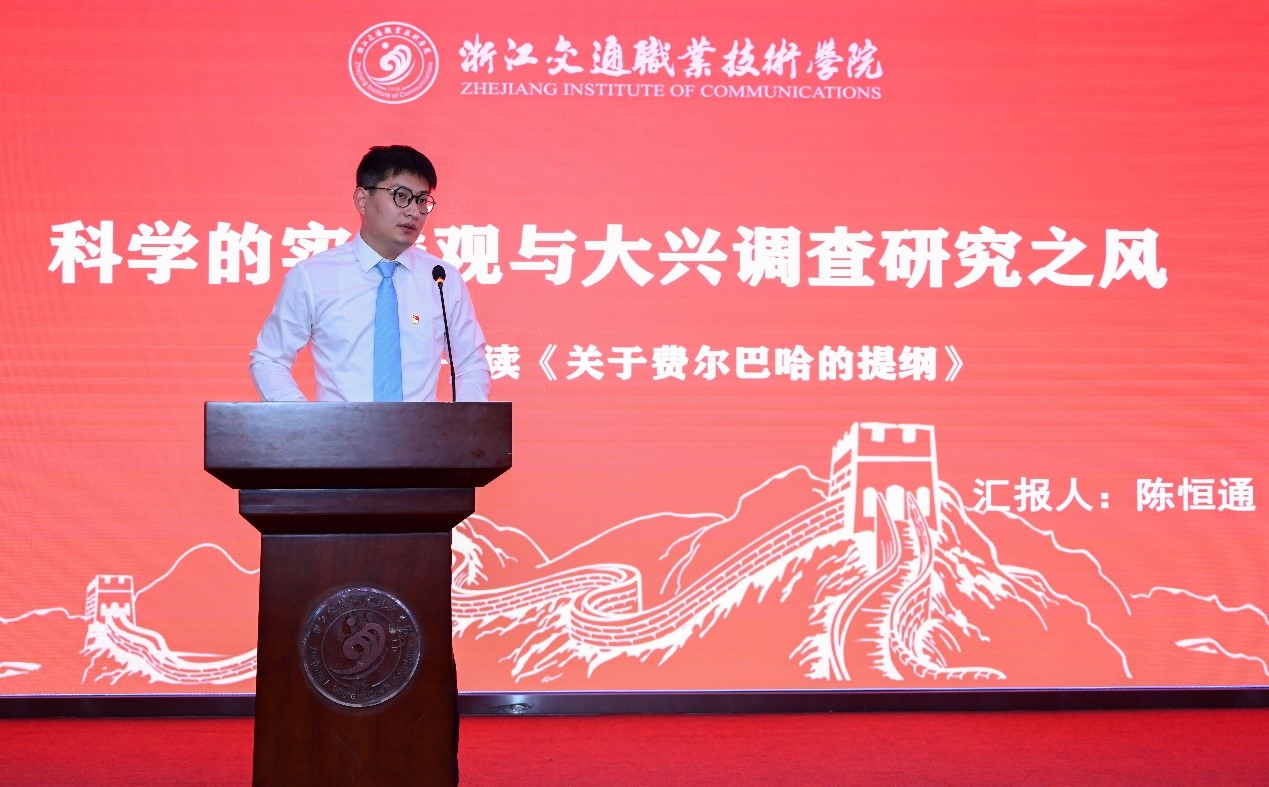 学校马克思主义学院思政教师陈恒通以《科学的实践观与大兴调查研究之风——读<关于费尔巴哈的提纲>》为主题,现场上了一堂马哲精品公开课。
