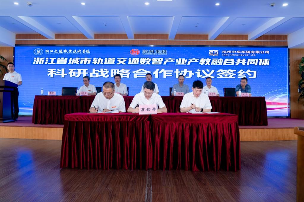 7月26日,浙江省城市轨道交通数智产业产教融合共同体(简称“共同体)成立大会我校隆重举行。学校党委副书记、院长陈凯,浙江省公路与运输管理中心出租汽车与轨道处处长王振洪,学校党委副书记孙常强,杭州地铁运营有限公司党委书记、董事长徐波,杭州地铁科技有限公司董事长朱佳峰,杭州中车车辆有限公司总工赵华,学校教务处副处长(主持工作)袁道福,轨道交通学院院长白继平、党总支书记徐晓峰和企业代表、师生代表共180余人共同参会。会议由学校党委委员、人事处处长潘国强主持。