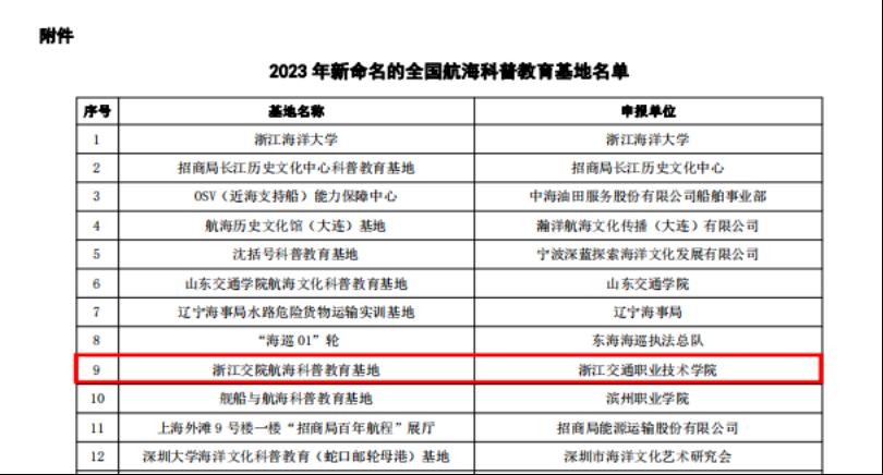 2023年7月24日,中国航海学会公布了2023年新命名的全国航海科普教育基地名单,我校申报的“yl6809永利官网航海科普教育基地”成功入选,正式成为“全国航海科普教育基地”。