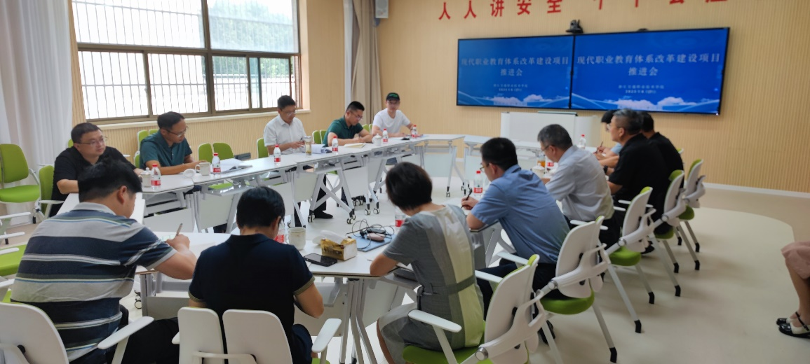 袁道福副处长对现代职业教育体系改革建设项目的现有进度进行了汇报,介绍了职业教育信息化标杆学校、职业教育示范校虚拟仿真基地、职业教育专业教学资源库、职业教育优质教材、职业教育校企合作典型生产实践项目、职业教育一流核心课程等项目的进度安排、申报策略。他指出,下一步要继续梳理文件政策,明确重点难点,发挥优势特长,严格按照时间节点保质保量完成各项建设任务的申报。各分院负责人就现代职业教育体系改革建设项目过程中的具体实施、实际问题、未来打算等内容进行了充分的讨论,一致认为要站在省域和学校整体发展视角,整合专业优势,为构建长远发展体系夯实基础。