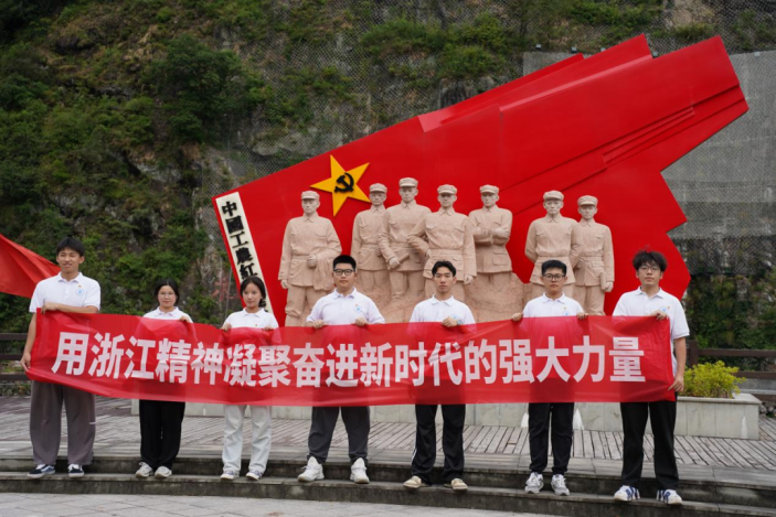 在中国工农红军挺进师纪念园,实践团参观了象征着万千革命群众高举鲜艳的红旗舞动飞扬的红石柱群、五百将士出征浮雕墙、纪念碑建筑群;在中国工农红军挺进师纪念碑前开展祭扫活动;参观“北上抗日出征门”。在陈列馆,实践团学习了解以中国工农红军挺进师军史为主线,依托浙南游击根据地的革命历史。