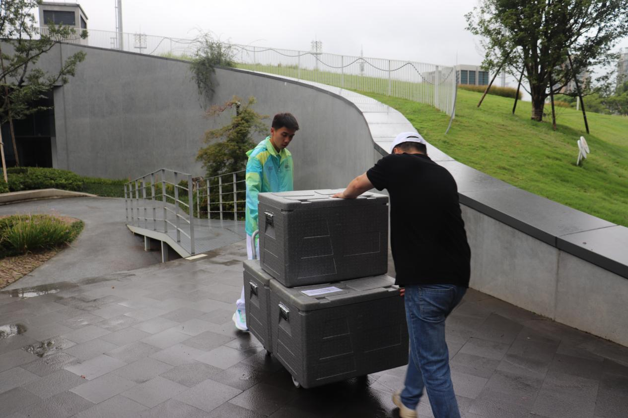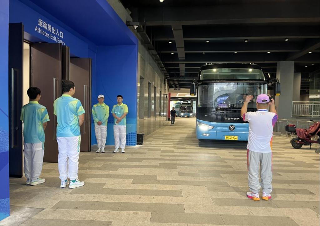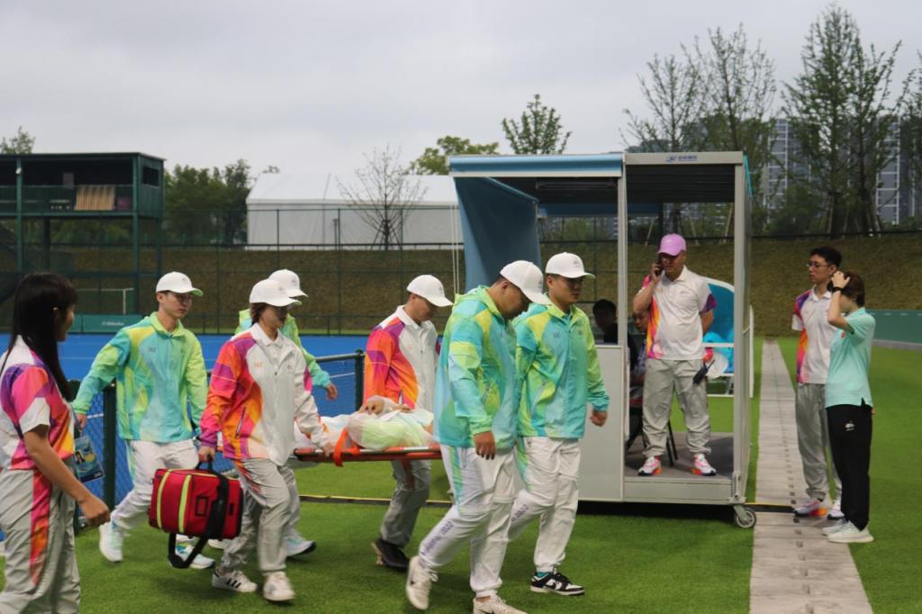 “赛时一天”综合演练共有来自观众服务、竞赛综合技术运行、竞赛综合事务、医疗卫生等10个领域的105名志愿者参加。每位志愿者着装统一、以饱满的热情参与其中。竞赛技术运行领域的志愿者们比较特殊,尤其是守护在赛场内侧的“球童”们,演练中“球童”们身着雨衣在赛场内逐球奔跑。餐饮物流领域的志愿者们是大家的“开心果”,他们保障场馆内全体工作人员与志愿者的每日用餐。还有其他领域的志愿者们,让我们共同欣赏他们的风采吧!