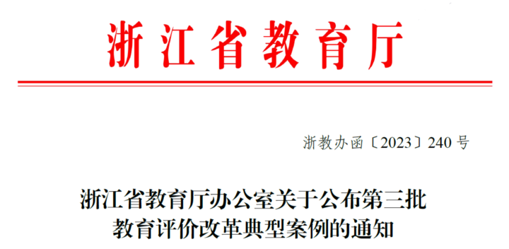 近日,浙江省教育厅公布了《浙江省教育厅办公室关于公布第三批教育评价改革典型案例的通知》,我校教师评价综合改革《守正创新、破立并举,以教师评价改革推动学校高质量发展》成功入选。