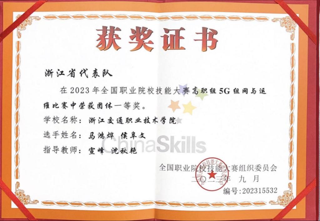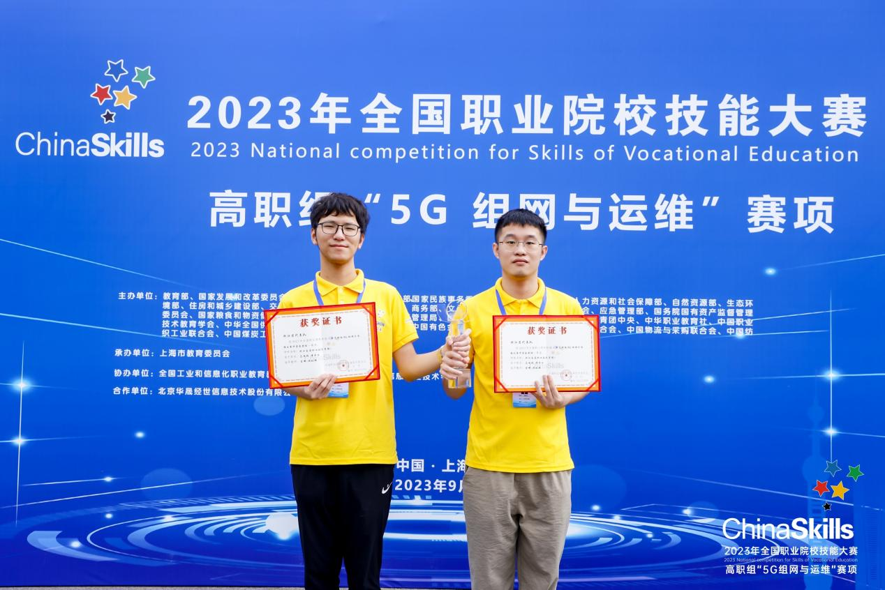 2023年9月25日,全国职业院校技能大赛上海赛场传来喜讯,在刚刚结束的高职组5G组网与运维赛项中,由我校马鸿烨、侯阜文两位同学组成的yl6809永利官网代表队荣获团体一等奖,宣峰、沈秋艳两位老师荣获“优秀指导教师”称号。该赛项由教育部和上海市人民政府等单位联合主办,上海市教育委员会承办,全国工业和信息化职业教育教学指导委员会和上海电子信息职业技术学院协办。我校智慧交通学院戎成院长带队参赛,共有来自31个省、市、自治区和新疆生产建设兵团的60支代表队120名选手齐集上海同场竞技。