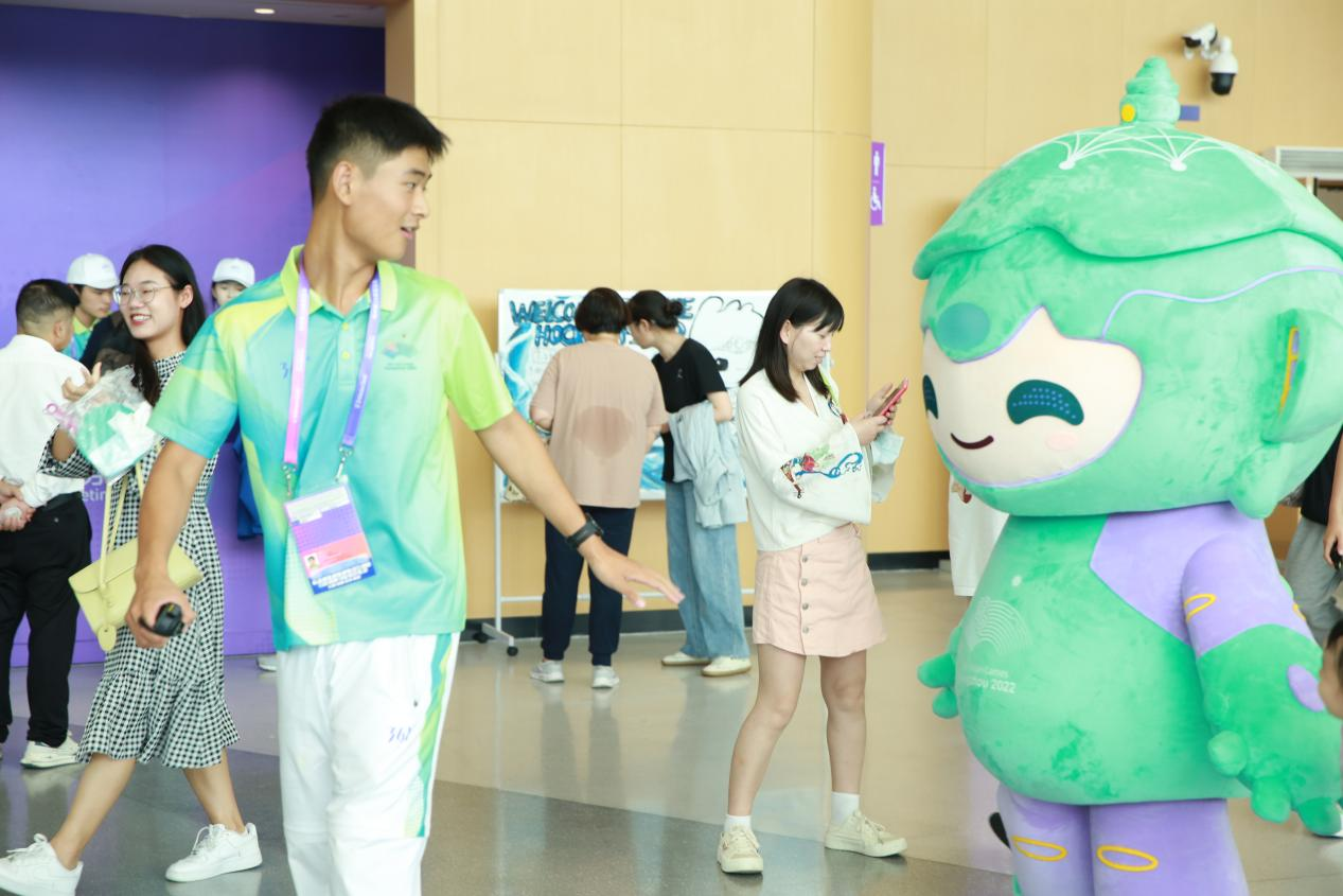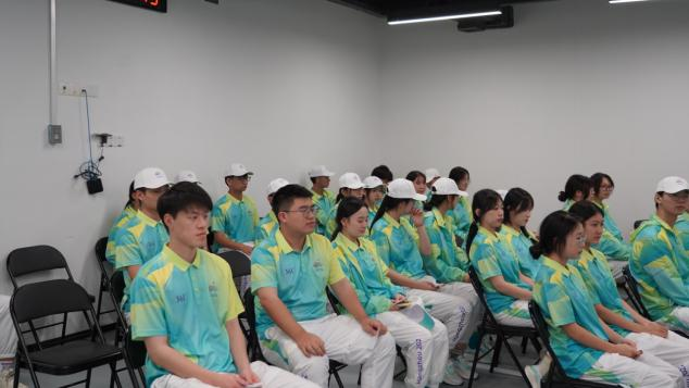 媒体运行领域“小青荷”开始查验媒体证件,引导媒体人员入座,并引导媒体在指定地拍照摄影,保障记者采访顺利进行;反兴奋剂领域“小青荷”开展反兴奋剂教育拓展活动;礼宾接待领域“小青荷”接待外国来宾。