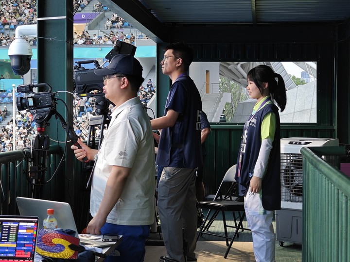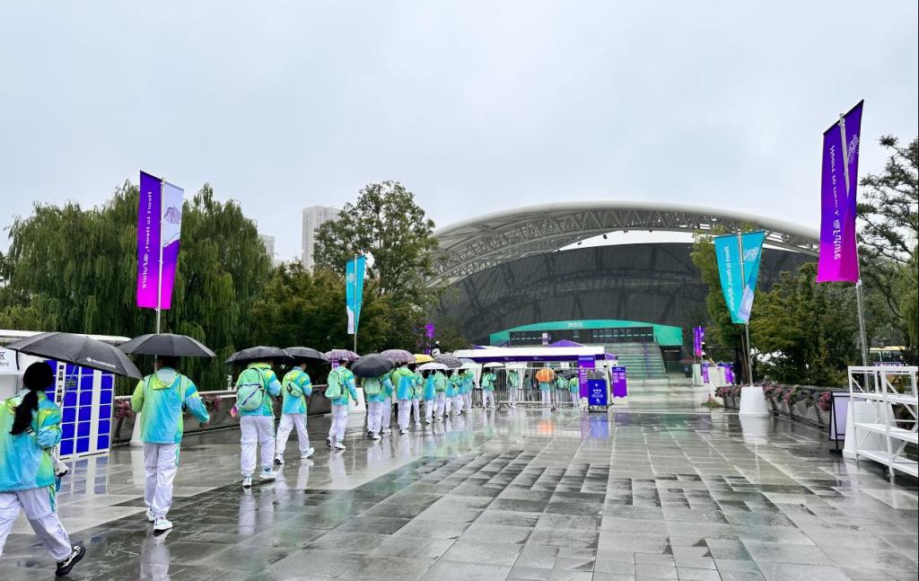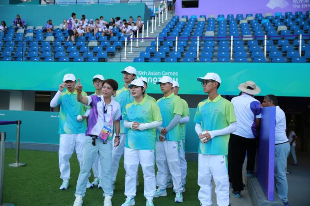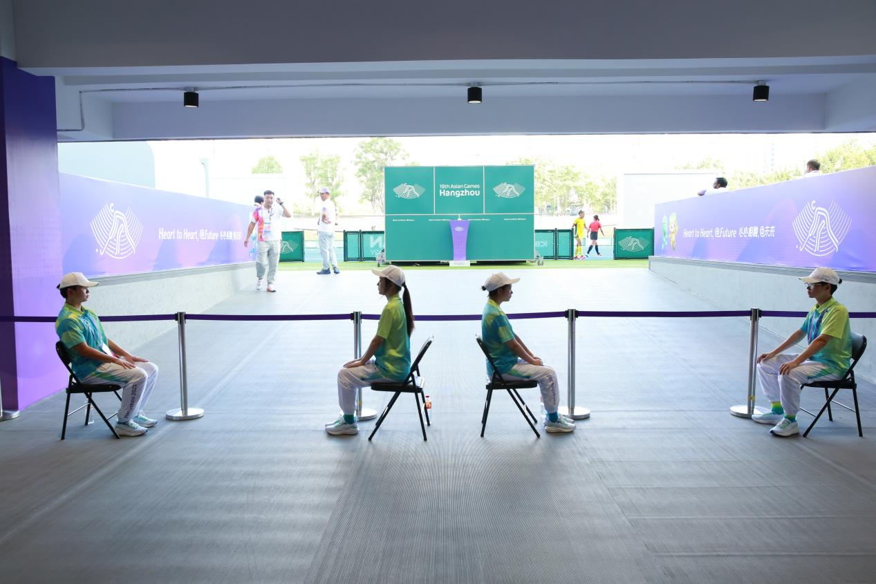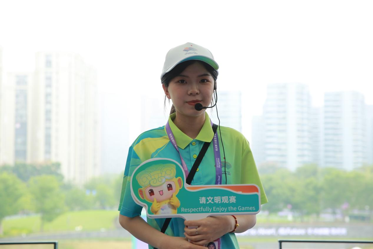 市场开发与票务领域“小青荷”在检票通道引导观众入场;观众服务领域“小青荷”为前来观赛的观众们指引通往看台的线路并提供赛事信息;信息技术领域“小青荷”随时待命,做好赛事成绩打印、分组、传递、交接任务;转播领域“小青荷”负责转播机构顺畅运作。
