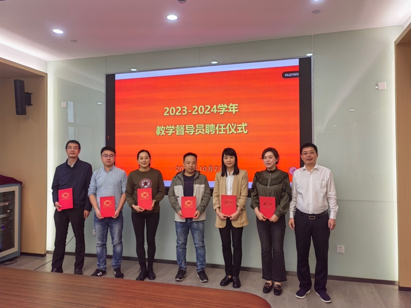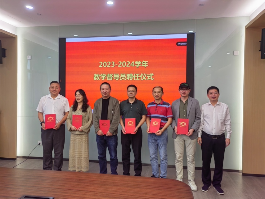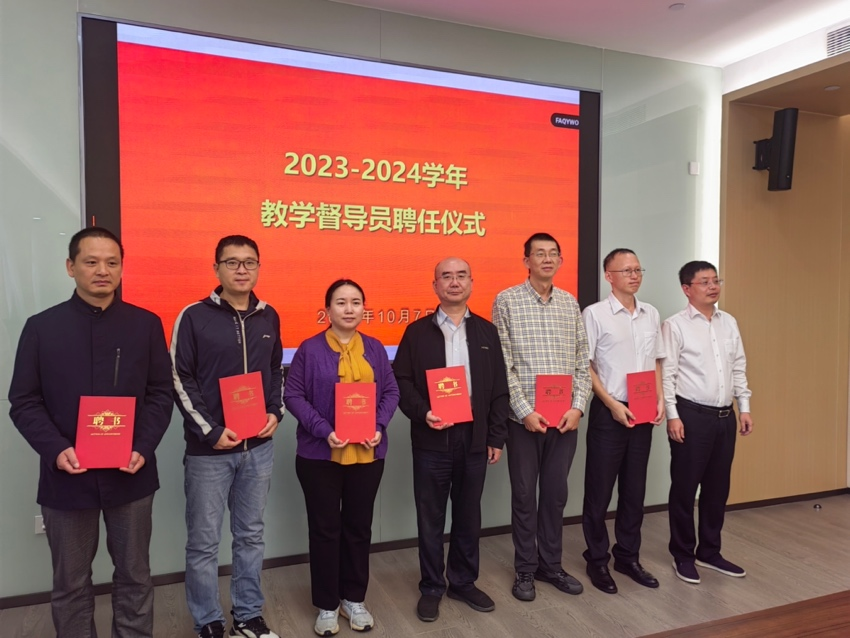 会议首先进行2023-2024学年校级教学督导员聘任仪式,教学督导室主任高波宣读新学年聘任的教学督导名单,陈凯院长为校级教学督导员颁发聘书。