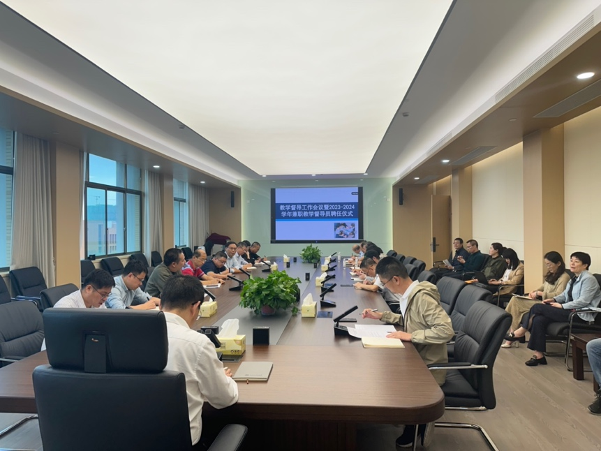 为进一步健全学校教学质量监控体系,提高课堂教学质量,10月7日下午,我校在行政楼五楼会议室召开了2023-2024学年教学督导工作会议,并举行校级教学督导员聘任仪式。陈凯院长、各分院院长和教学督导组长、教学督导员以及教学督导室全体人员参加会议。会议由教学督导室副主任洪波主持。