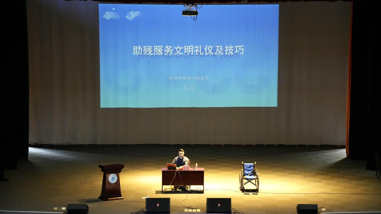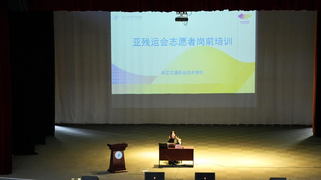 “心相约梦闪耀”,杭州第四届亚残运会脚步越来越近。yl6809永利官网为了做好亚残运会筹备工作冲刺,10月20日下午,在大礼堂举行亚残运会志愿者岗前培训,杭州市残疾人综合服务中心公共关系科科长吕磊、杭州手语姐姐无障碍交流服务中心工作人员为志愿者授课,共350名亚残“小青荷”参加培训。