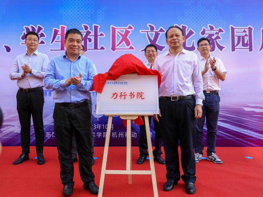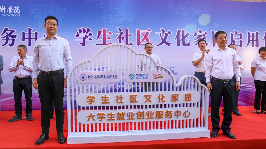 学校陈凯院长和中国移动通信集团浙江有限公司杭州分公司杨征副总经理共同为学生社区文化家园揭牌。学生社区文化家园在今天顺利揭牌并正式启用,必将成为加快推进“一站式”学生社区建设,丰富校园文化和服务全体师生的新征程。