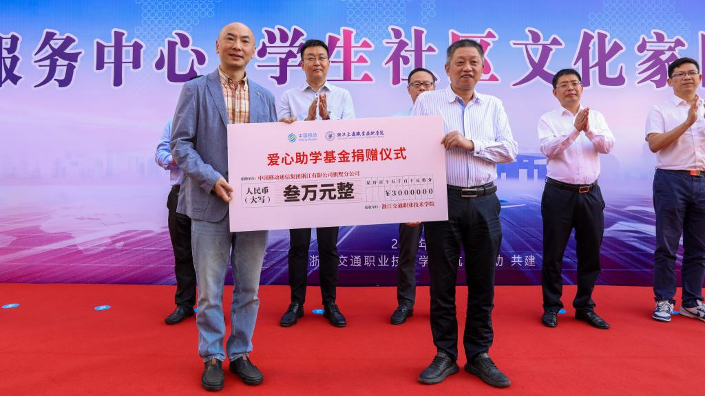 中国移动通信集团浙江有限公司杭州分公司党委委员、副总经理杨征发表致辞。他代表杭州移动对我院党群服务中心、学生社区文化家园的落成启用表示祝贺,对我院以及我院的全体师生一直以来的关心和支持表示感谢。未来,希望双方进一步加强合作交流,为学校发展、“智慧校园管理”、交通产业联盟建设、以及党群服务中心、和文化家园的建设提供更多的动能。