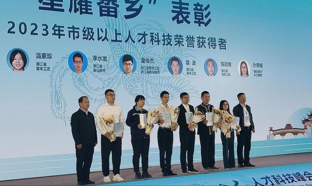 会上,陈凯院长为景宁2023年市级以上人才科技荣誉获得者颁奖。