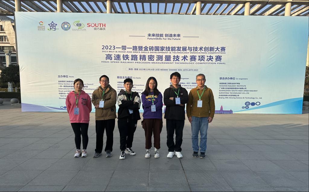 11月17日至20日,由一带一路暨金砖国家技能发展国际联盟、教育部中外人文交流中心等联合主办的2023一带一路暨金砖国家技能发展与技术创新大赛高速铁路精密测量技术赛项在陕西铁路工程职业技术学院举行,来自全国31个省、自治区和新疆生产建设兵团的三十多支队伍同台竞技、共展风采。经过三天的激烈角逐,由我校路桥学院铁道工程技术专业蒋庆云、孙佳杰、陈海涛、陈远平4名学生组成的竞赛团队在张冰冰、许玮珑老师的指导带领下,获得了全国二等奖的好成绩。