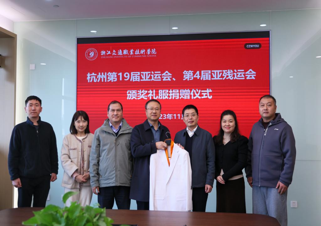 为了表彰学校在志愿者培训中的卓越贡献,11月29日下午,亚运会体育展示与颁奖仪式部李向晟部长向学校赠送了亚运专属礼服和感谢信,以感谢学校为亚运会做出的巨大贡献。学校陈凯院长出席了捐赠仪式。