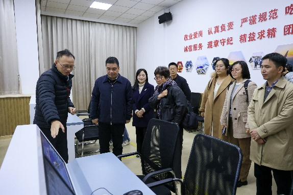 座谈会后,调研组实地考察了飞机维修2D/3D模拟仿真实训室、VR航海教学体验平台、智慧平安校园,认真查阅了智慧校园评价数据核验相关支撑材料,并观看了数据中心及相关业务系统演示。