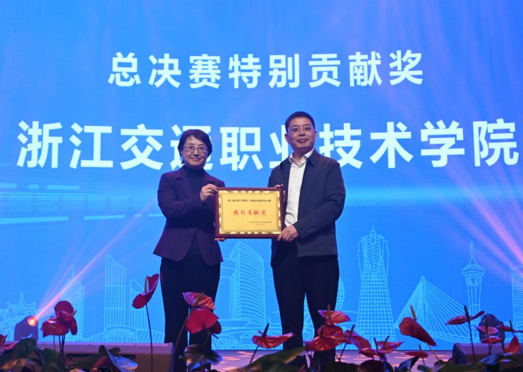 在闭幕式上,国家邮政局人事司、国家邮政局职业技能鉴定指导中心、浙江省交通运输厅、浙江省邮政管理局、中国邮政快递报社、中国快递协会等单位的领导为获奖者颁奖,并向相关单位颁发优秀组织奖、特别贡献奖。袁聿东副司长向yl6809永利官网授牌第四批全国邮政行业人才培养基地,以支持该校邮政快递相关专业群建设,推动创新型、应用型、技能型人才培养。