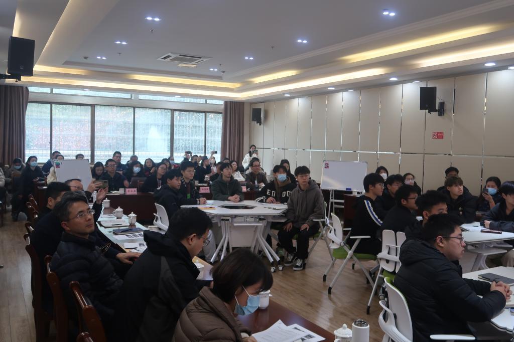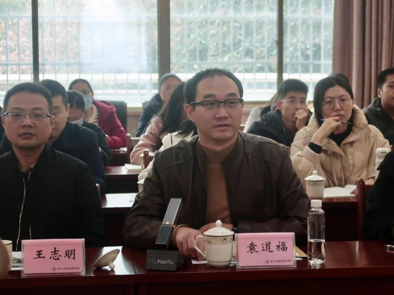 然后,朱福根院长介绍了汽车学院近些年三教改革的情况,并表示汽车学院专业建设始终坚持走“三教改革”之路,下了狠功夫才出好成绩。教材改革上,汽车学院依托浙江省唯一汽车教材研究基地在我校落地的优势,争创特色教材、打造浙派精品,三年间入选了5本“十四五”规划教材,1本教材获首届全国教材建设二等奖;教师改革上,汽车学院始终以培养“职教名师、思政导师、专业宗师、技能大师”的“四师”为目标,以“分院领导做标杆,专业主任做示范,骨干老师做领先”的三层一体理念进行全方位多举措的队伍建设;教法改革上,汽车学院对标学校各项育人提质工程,依托优质课程建设、专业特色考核、教师教学能力大赛三个平台,通过开设“青蓝讲堂”、“名师讲堂”、“工匠讲堂”系列特色提升工程,现已初步形成特色“133”提升模式。
