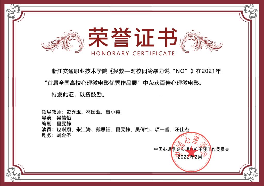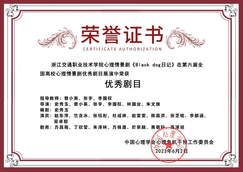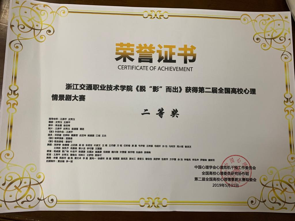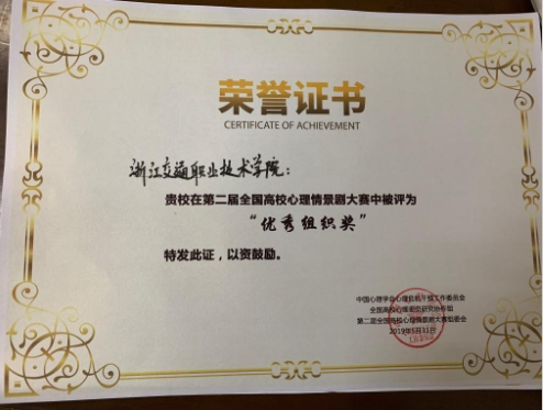 (2019年)第二届全国高校心理情景剧二等奖、优秀组织奖图