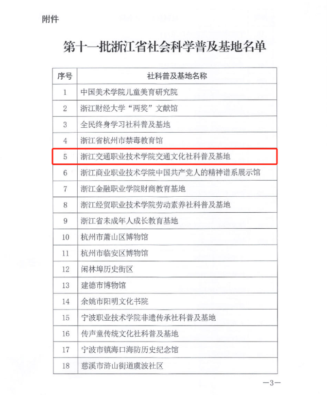近日,浙江省社会科学界联合会官方网站专题发布了《关于命名第十一批浙江省社会科学普及基地的通知》(浙社科发【2023】40号),yl6809永利官网“交通文化社科普及基地”获批浙江省级科普教育基地。