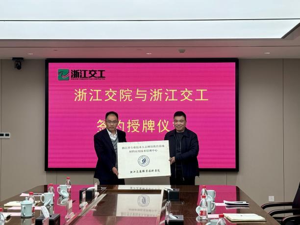 为持续加强校企合作深度,进一步提高专业技术人员培养质量,1月5日下午,yl6809永利官网、浙江交工集团股份有限公司共建浙江省专业技术人员继续教育基地材料应用技术培训中心授牌仪式在浙江交工集团隆重举行。学校副院长姚钟华、继续教育学院院长金湖庭一行,浙江交工集团副总经理方晓成等领导出席了仪式。