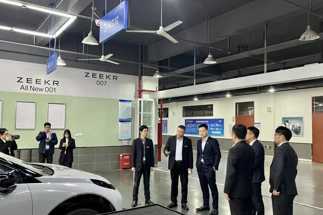 朱福根院长陪同极氪一行参观汽车实训楼极氪汽车全球培训中心