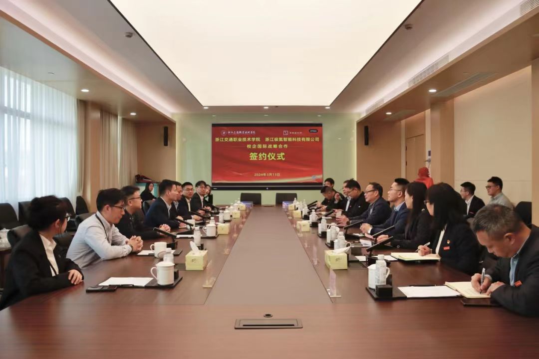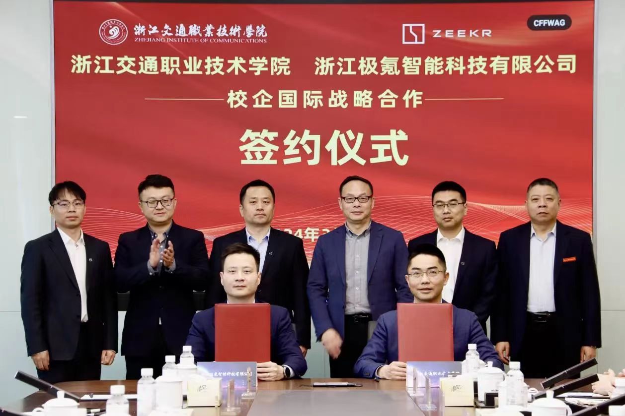 3月13日,我校与浙江极氪智能科技有限公司(以下简称“极氪”)在学校5楼会议室举行“极氪汽车全球培训中心”校企合作签约暨揭牌仪式。