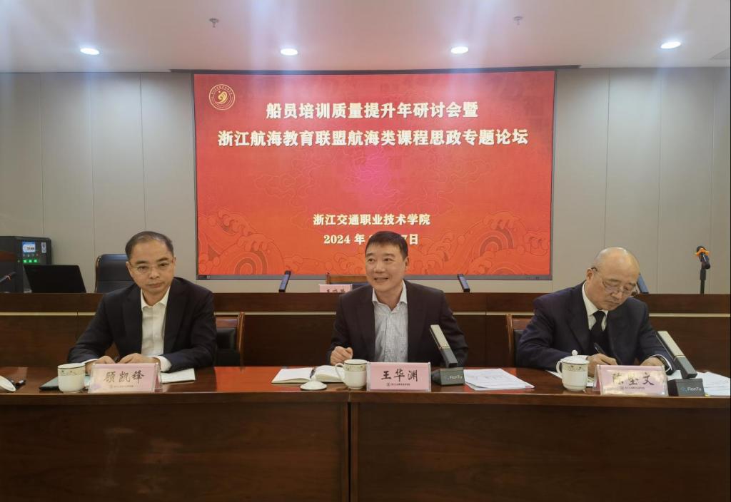 3月27日,浙江省船员培训质量提升年研讨会暨浙江航海教育联盟航海类课程思政专题论坛在我校召开。本次研讨会围绕“航海类课程思政”和“船员培训质量提升年”等主题内容进行讨论,进一步推动了浙江航海教育联盟工作、推进了浙江航海教育高质量发展。论坛邀请了浙江海事局副局长王华渊一行莅临出席,我校顾凯锋副校长、继续教育学院院长金湖庭、海运学院院长蒋更红等出席了会议,宁波大学等航海院校及相关培训机构负责人等参加了会议。