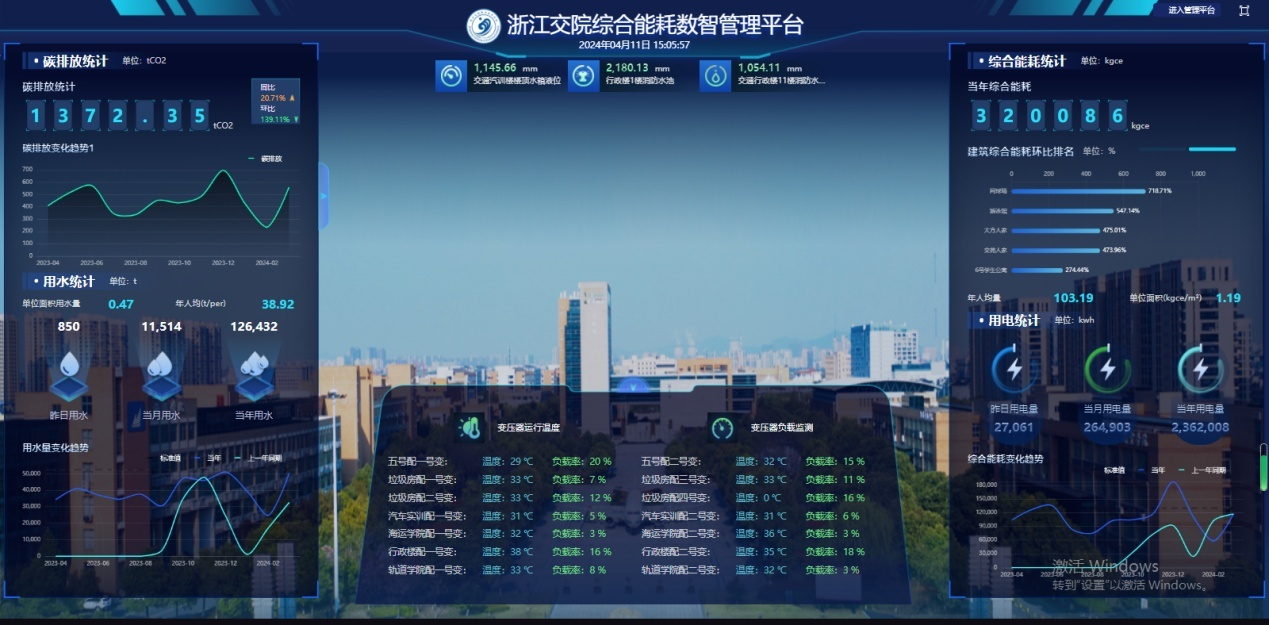 近年来,我校始终坚持以提高能效为核心,不断探索和实践先进的能源管理理念和技术,通过精细化管理和智能化改造,逐步降低能源资源消耗,提升能源资源利用效率,为学校绿色低碳发展注入强劲动力。在能源管理方面,建立了综合能耗数智管理平台,实时监控能耗资源使用情况,及时发现并解决消耗异常问题。