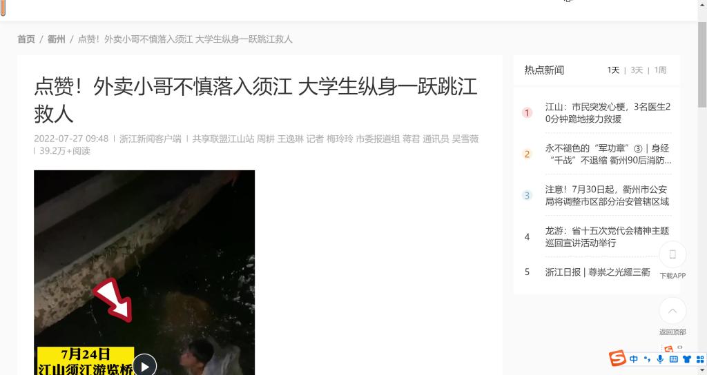 下一条:江山新闻网:外卖小哥不慎落入须江 江山小伙与大爷纷纷下水救人