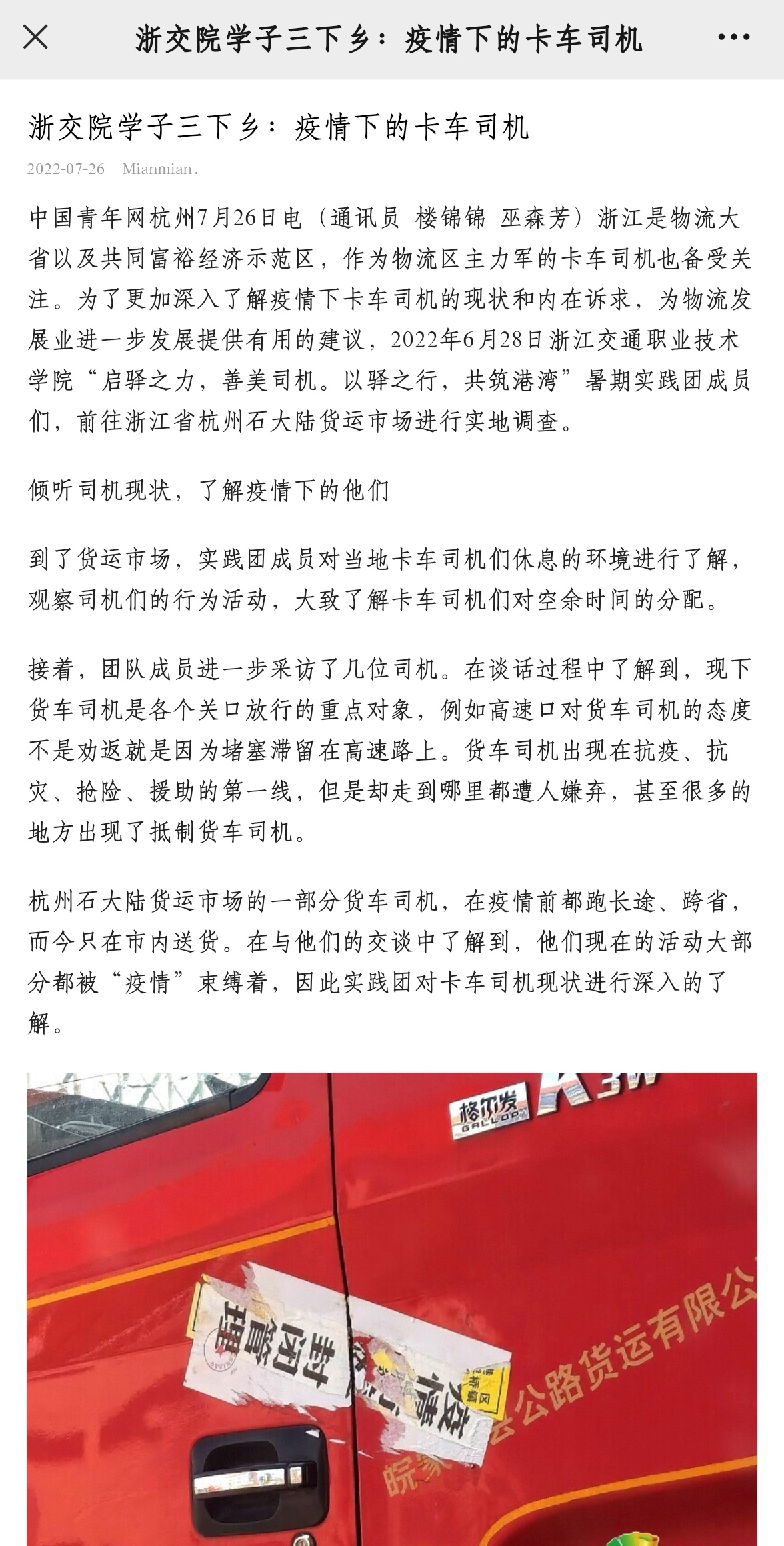 下一条:中国青年网:浙我院学子三下乡:安心驿站—司机之家