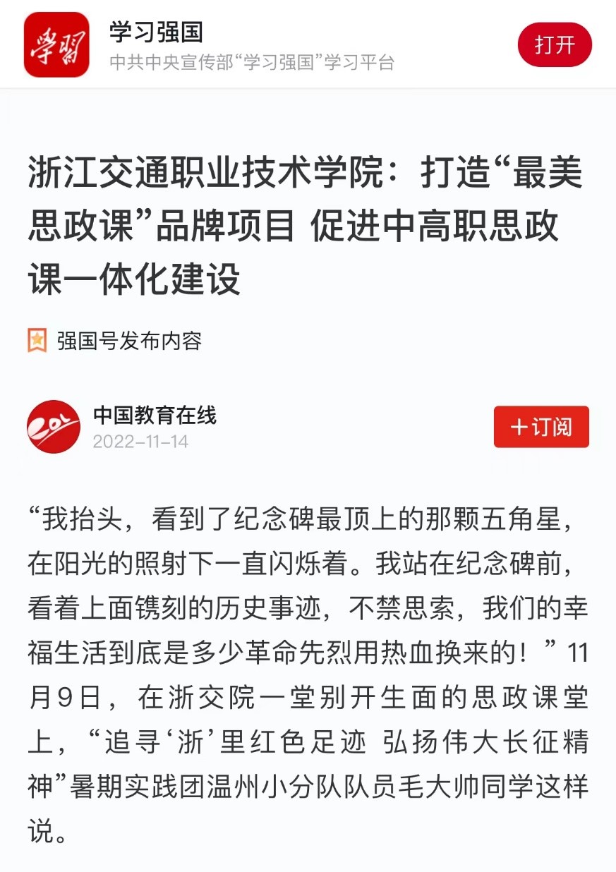 上一条:浙江新闻:浙江交职院:打造“最美思政课”促进思政课一体化建设