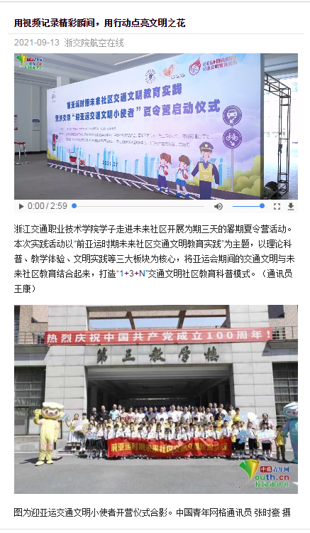 下一条:中国青年网:浙我院“迎亚运交通文明小使者”公益夏令营