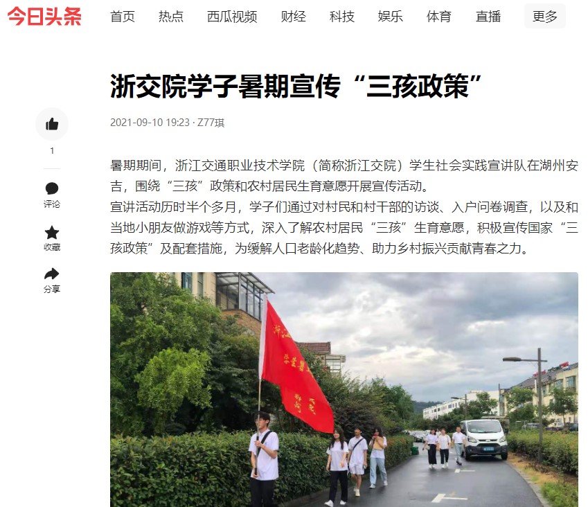 下一条:凤凰新闻:青春使命 奋斗有我-----浙我院学子暑期宣传“三孩政策”