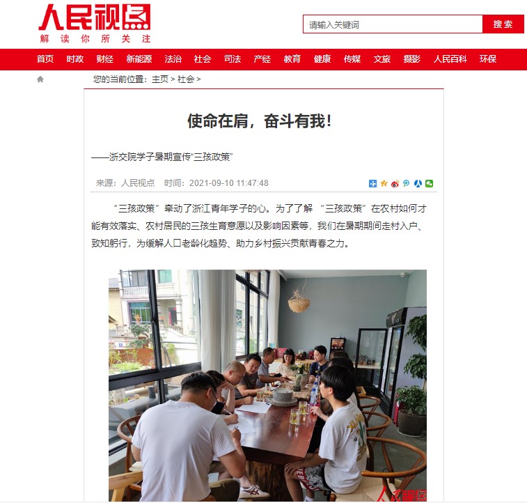 上一条:人民视点:浙我院学子暑期宣传“三孩政策”
