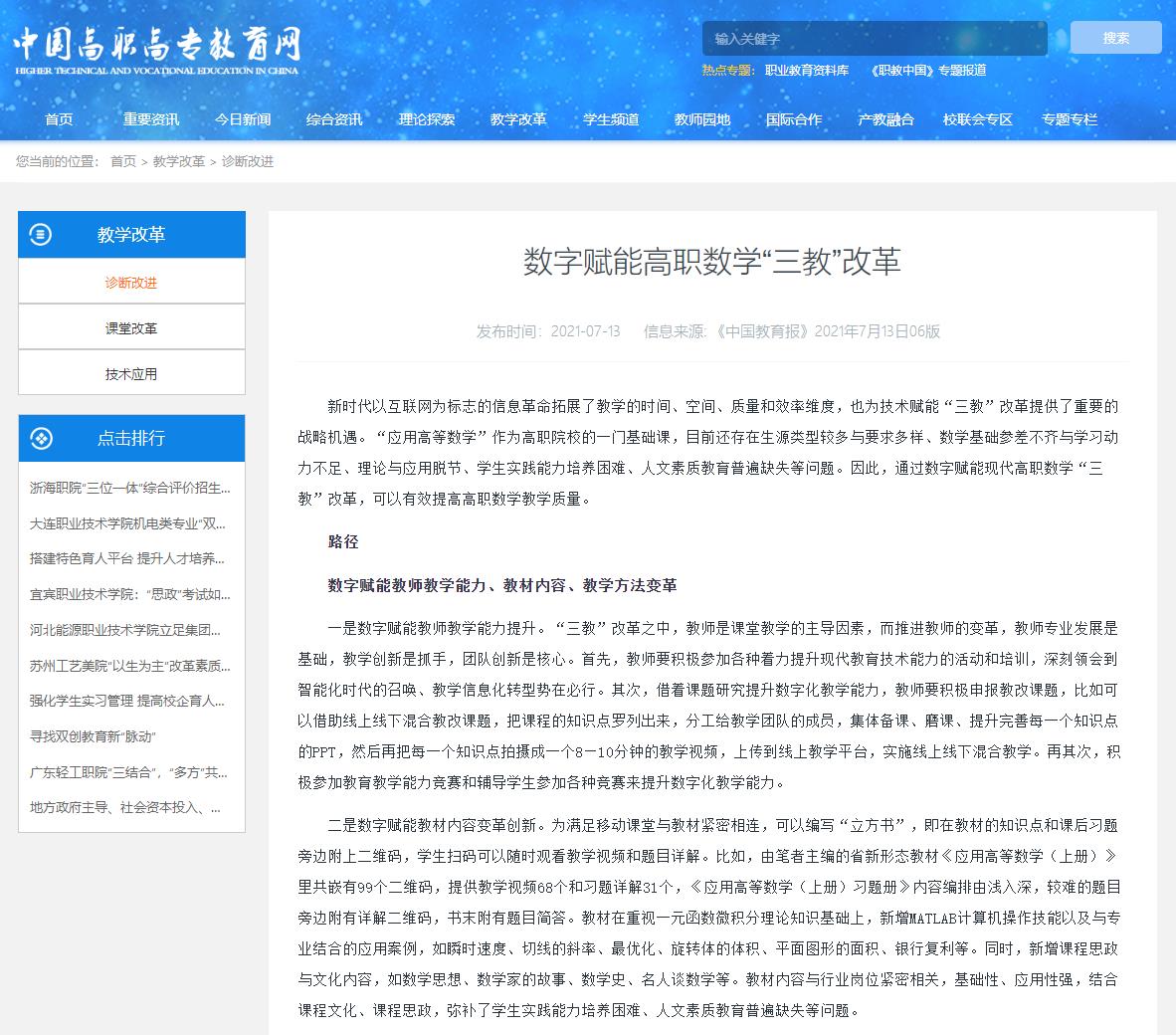数字赋能高职数学“三教”改革 - 中国高职高专教育网 (tech.net.cn)