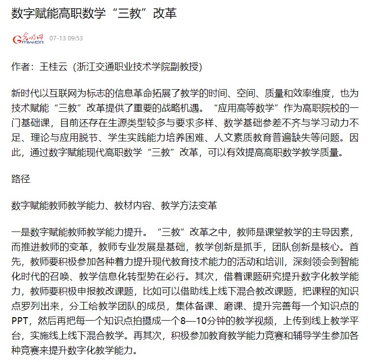 下一条:现代职业教育网:数字赋能高职数学“三教”改革