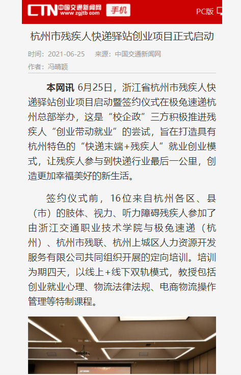 杭州市残疾人快递驿站创业项目正式启动__中国交通新闻网 (zgjtb.com)