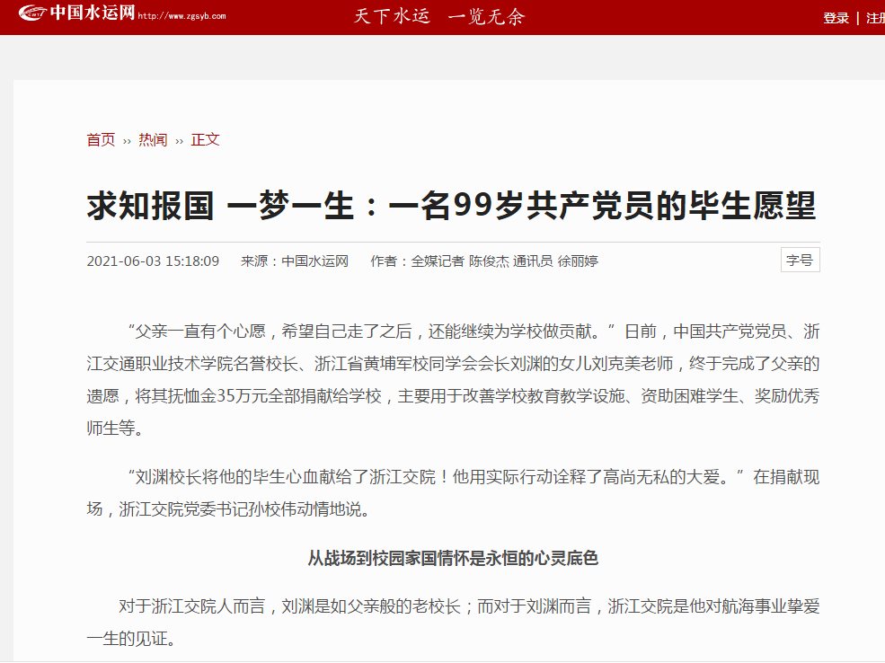 下一条:浙江交通:求知报国 一梦一生:一名99岁共产党员的毕生愿望
