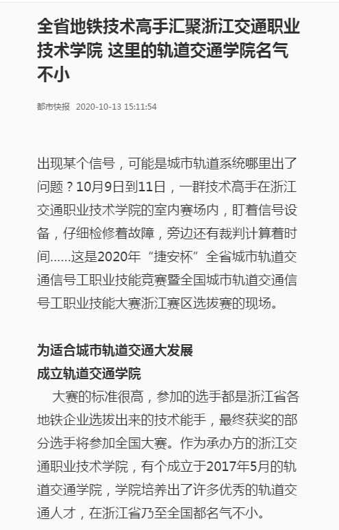下一条:中国交通新闻网:全国城市轨道交通信号工职业技能大赛浙江赛区选拔赛