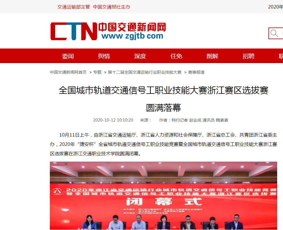 上一条:中国交通新闻网:全国城市轨道交通信号工职业技能大赛浙江赛区选拔赛