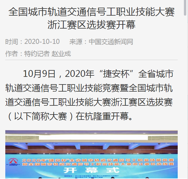 下一条:钱江晚报:全省最牛的轨道交通信号工都来了浙江交职院 就为了这件事