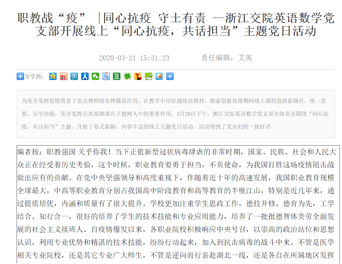 下一条:中国交通报:带温度 有力度 显效度——浙江交职院高职数学课“线上课程思政”实践