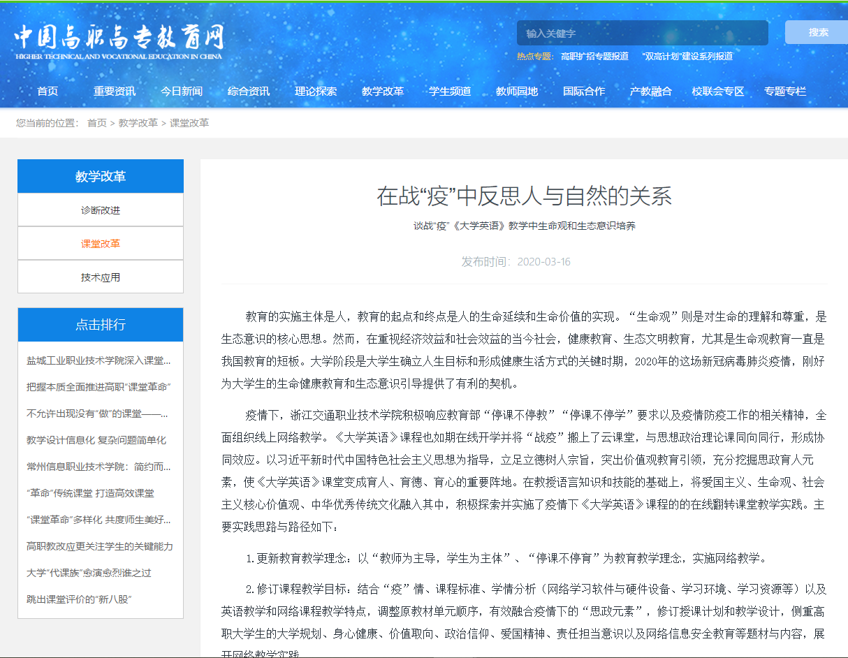 下一条:现代职教:职教战“疫”|浙我院开展“赛训结合”的教学能力提升系列活动